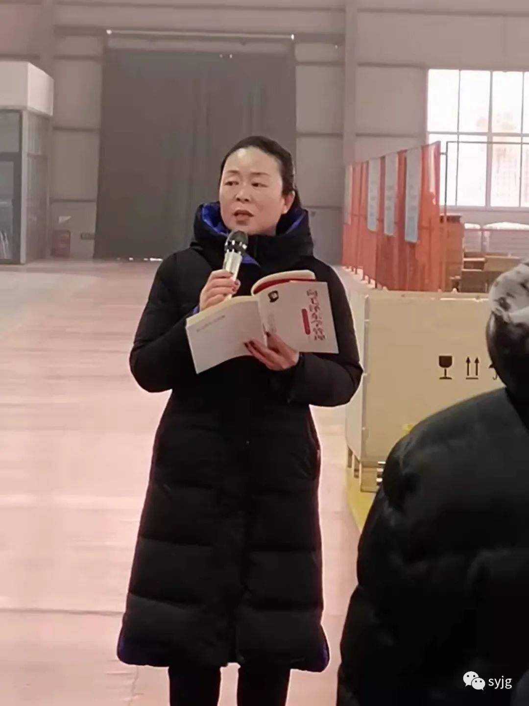 森宇精工黨支部書記、副董事長梁娜帶著大家一起學習一篇文章;